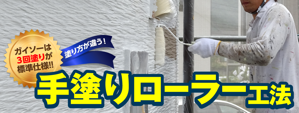 ガイソー室蘭店の手塗りローラー工法|ガイソーは3回塗りが標準仕様!